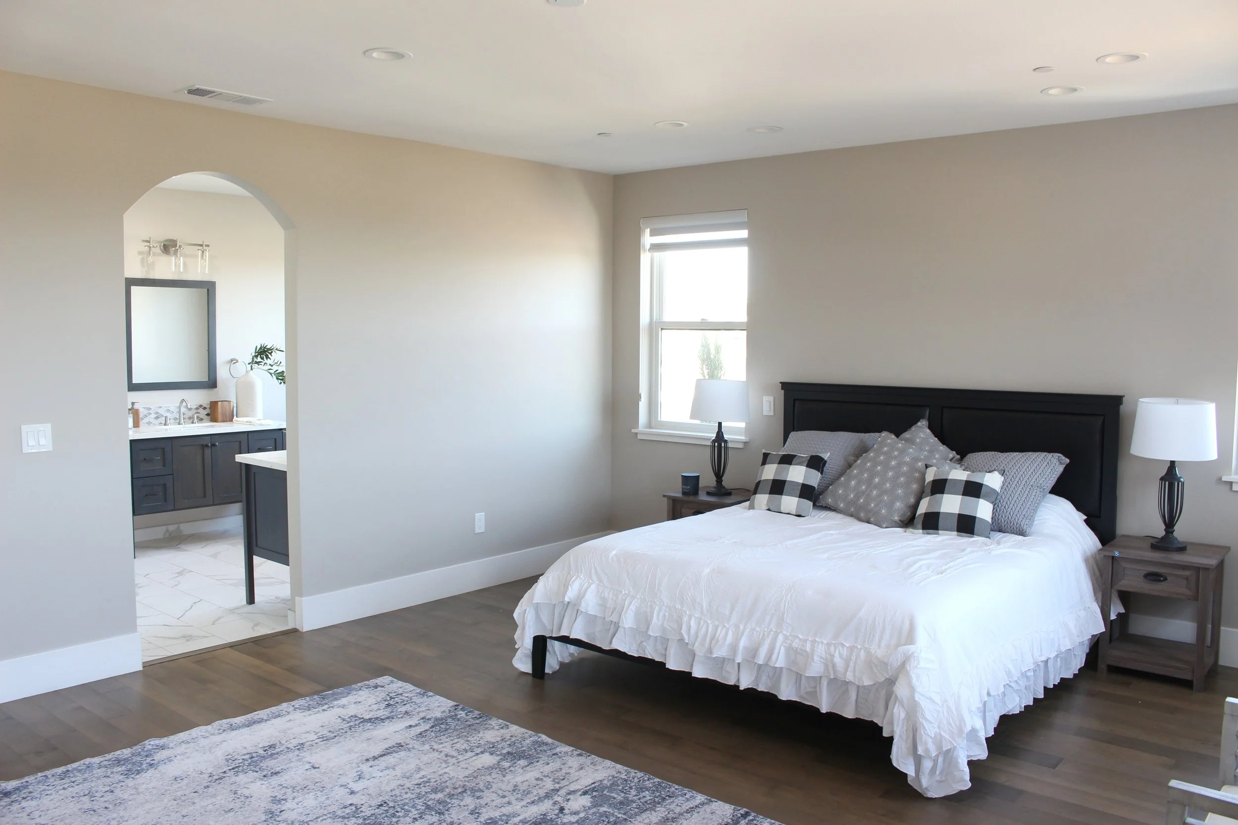 The updated kitchen features a sleek waterfall island, complemented by a classic subway tile backsplash that adds timeless charm. The hall bathroom is refreshed with modern tile finishes, offering a clean, contemporary look. In the master bath, modern elegance shines through with double vanities, a freestanding soaking tub, and a spacious walk-in shower—creating a spa-like retreat.